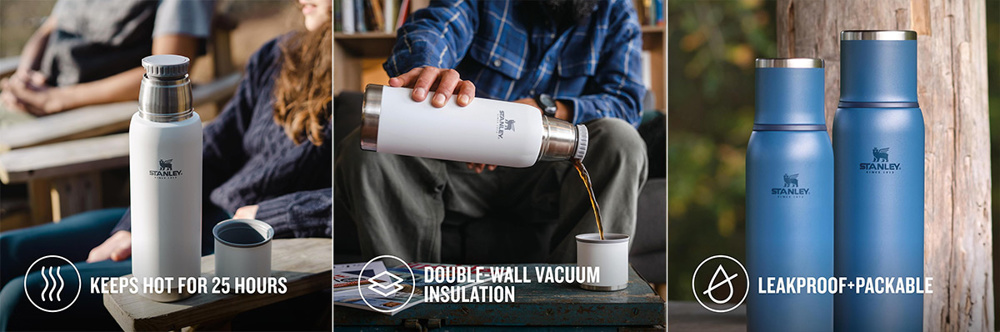 İçeceklerinizi 25 saat sıcak, 27 saat soğuk, buz takviyesiyle ise 5 gün soğuk tutabilen 1 Litrelik Adventure To-Go Serisi Termos, Stanley'nin yeni koleksiyonunun büyük abisi.